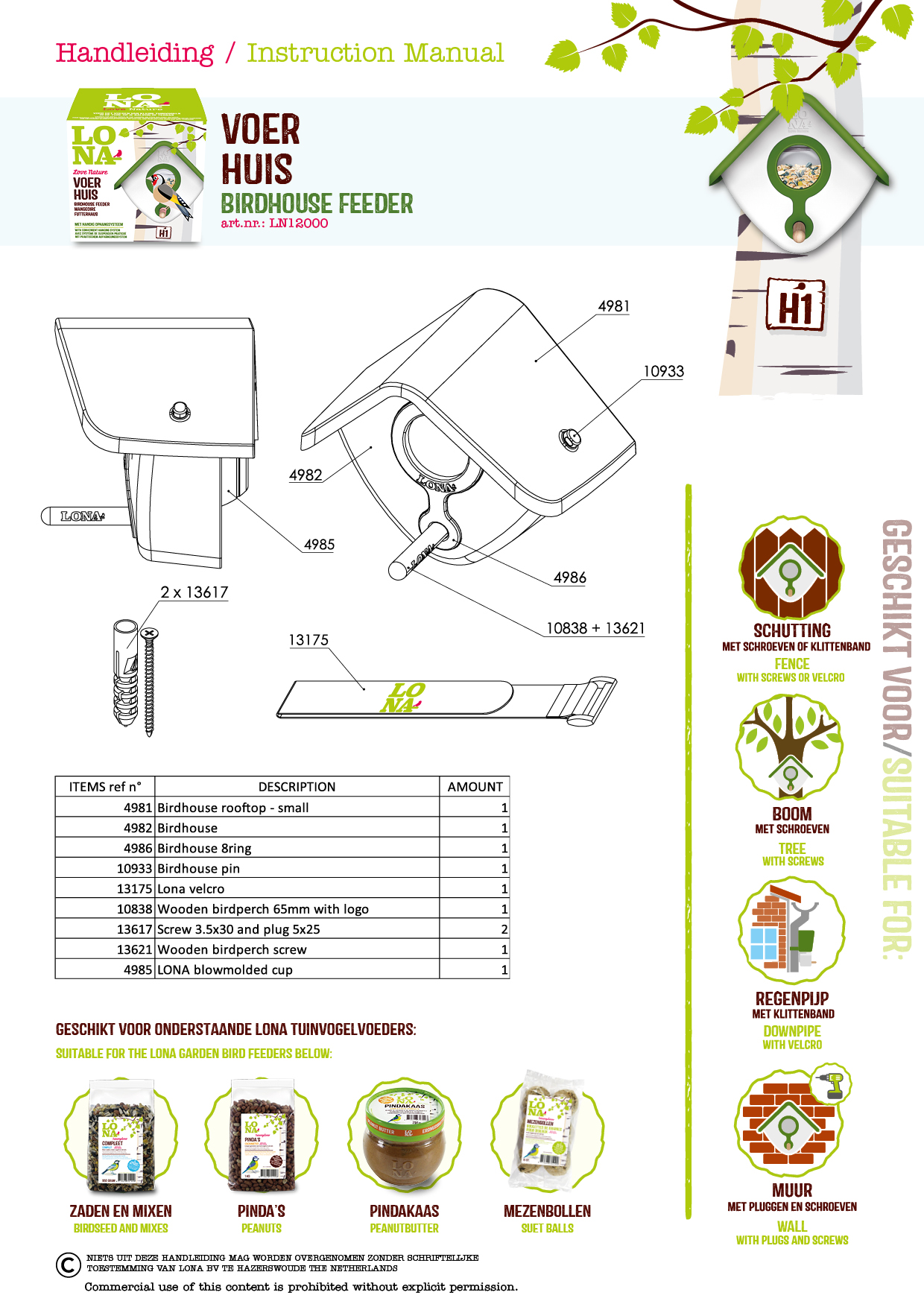 LONA H1 is een prachtig en duurzaam vogelvoederhuis voor het voeren van LONA-tuinvogelvoeders, mezenbollen én zelfs van die heerlijke LONA-pindakaas. Eenvoudig te bevestigen aan een regenpijp, boomstam, schutting, muur of pergola.​