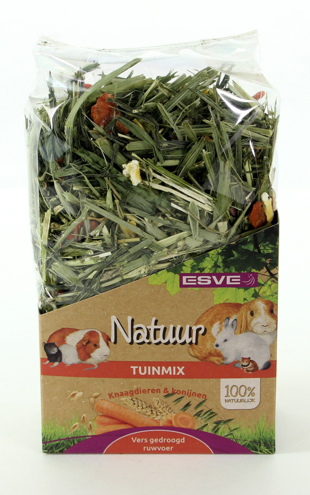 ESVE Natuur Tuin-mix komt direct van het land en bevat een hoog percentage natuurlijke vezels. Dit zorgt voor een goede spijsvertering bij knaagdieren en konijnen. Hoe beter de spijsvertering, des te meer dit de gezondheid van uw huisdier bevordert.